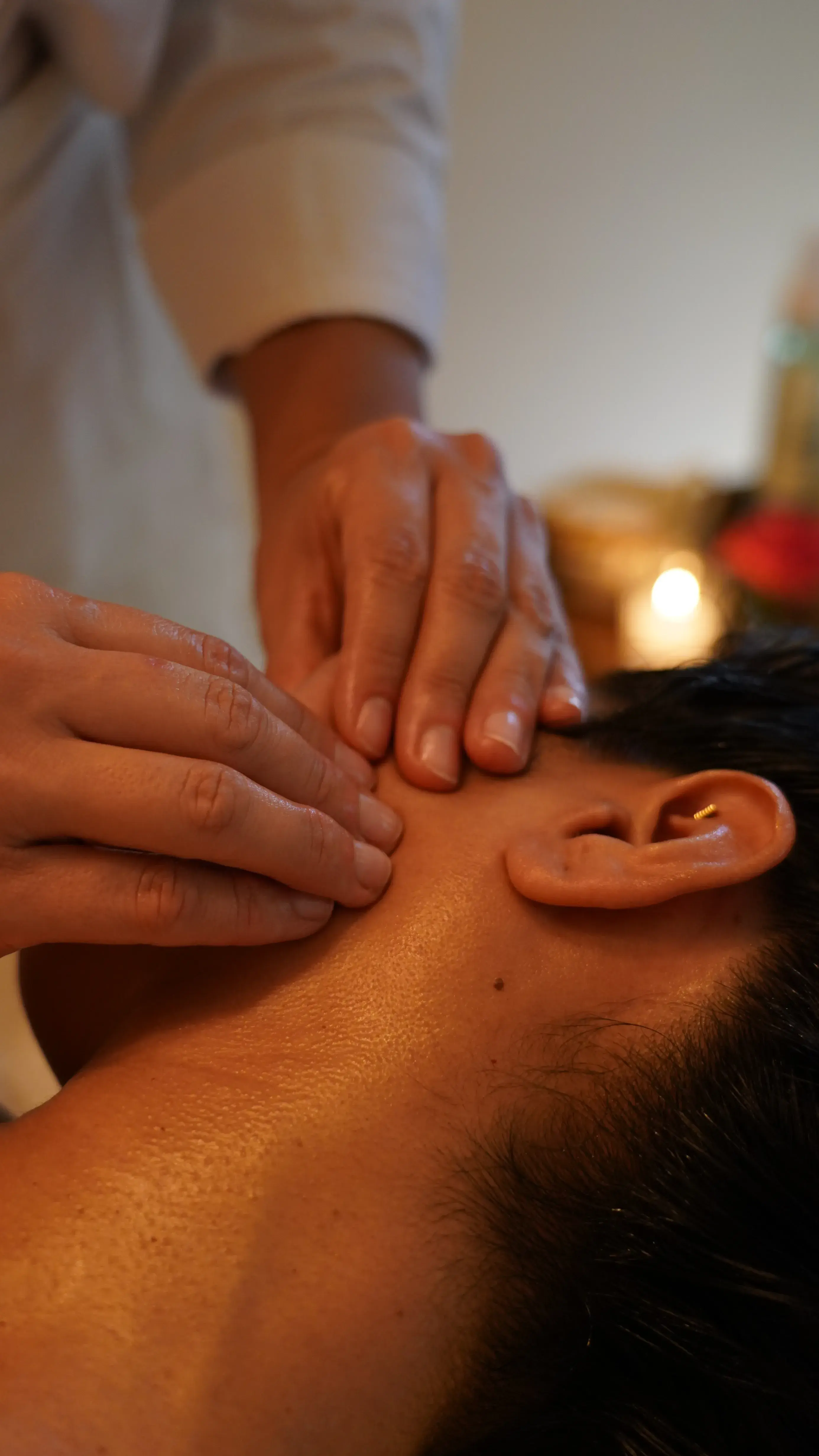 This massage is used to drain the accumulation of tension and liquid in the areas of the head, neck and face. The neurolymphatic points in the neck and head are used to relax the entire system and relieve ailments such as tired eyes, headaches, jaw pain, facial swelling and tension in the upper neck.